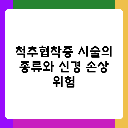 척추협착증 시술은 크게 수술과 비수술적 치료로 나눌 수 있습니다. 수술은 협착된 부위를 직접 제거하거나 고정하는 방법으로 진행되고, 비수술적 치료는 약물치료, 물리치료, 신경차단술 등이 있습니다. 각 시술마다 신경 손상 위험은 다르게 나타날 수 있습니다. 예를 들어, 수술의 경우 신경과 혈관이 가까이 위치해 있어서 정교한 수술이 필요하고, 의료진의 경험과 기술에 따라 신경 손상 위험이 달라진다고 해요. 비수술적 치료 중 신경차단술 역시 신경에 직접적으로 접근하는 시술이기 때문에 신경 손상 위험이 존재합니다. 어떤 시술을 선택하든 의료진과 충분히 상담하고, 시술의 장단점과 위험성을 정확하게 이해하는 것이 중요합니다. 본인의 상태에 맞는 최적의 시술 방법을 선택하도록 도와줄 수 있는 전문의의 상담을 꼭 받아보세요. 자신에게 맞는 치료법을 찾는 것이 가장 중요하다는 것을 잊지 마세요. 잘못된 정보로 인해 후회하는 일이 없도록 충분한 정보 습득은 필수입니다.