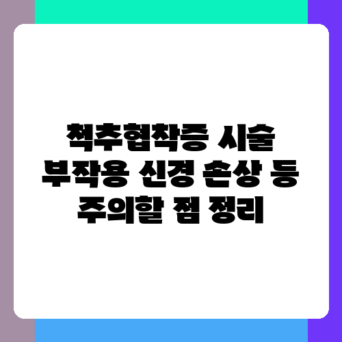 척추협착증으로 고생하시는 분들께서는 수술이나 시술을 고려하며 많은 고민을 하실 겁니다. 통증에서 해방될 수 있다는 기대감과 동시에 수술 후 부작용에 대한 걱정도 크실 거예요. 특히 신경 손상은 척추 시술에서 가장 우려되는 부작용 중 하나죠. 오늘은 척추협착증 시술 후 신경 손상을 비롯한 부작용과 주의해야 할 점들을 자세히 알아보고, 안전하고 성공적인 치료를 위한 정보를 드리고자 합니다. 함께 알아보아요.