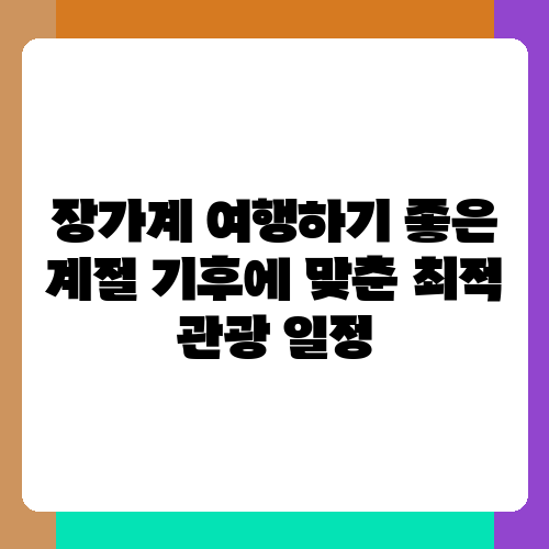 장가계 여행을 계획하고 계신가요? 아름다운 자연 경관으로 유명한 장가계는 사계절마다 다른 매력을 선사하지만, 여행 계획을 세울 때 가장 중요한 건 역시 날씨죠. 때로는 갑작스러운 비로 여행 일정이 틀어지기도 하고, 혹은 폭염으로 인해 힘든 여정이 되기도 하니까요. 그래서 오늘은 계절별 날씨 특징을 고려하여 장가계 여행을 가장 즐겁게 즐길 수 있는 최적의 여행 일정을 함께 만들어보려고 합니다. 여행 전에 미리 날씨 정보를 확인하고, 여행 계획을 세우는 것만큼 중요한 건 없으니까요!