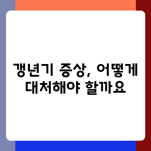 갱년기 증상, 어떻게 대처해야 할까요
