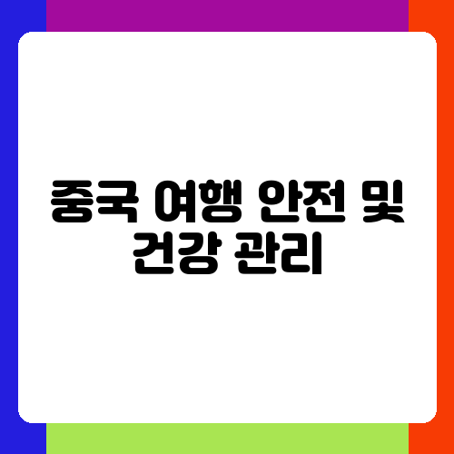 중국 여행 중 안전사고를 예방하기 위해 귀중품을 잘 관리하고, 사람이 많은 곳에서는 소매치기에 유의하세요. 또한, 음식을 섭취할 때는 위생에도 신경 쓰는 것이 중요합니다. 그리고 여행 전에 필요한 예방접종을 확인하는 것도 잊지 마세요. 저는 예전에 중국 여행 중 배탈이 난 적이 있었는데, 그때부터는 항상 소화제를 챙겨 다니고, 물은 생수만 마시도록 주의하고 있습니다. 여행 중 건강에 문제가 생기면 여행 일정에 차질이 생길 수 있으니, 건강 관리에 각별히 신경 쓰세요.