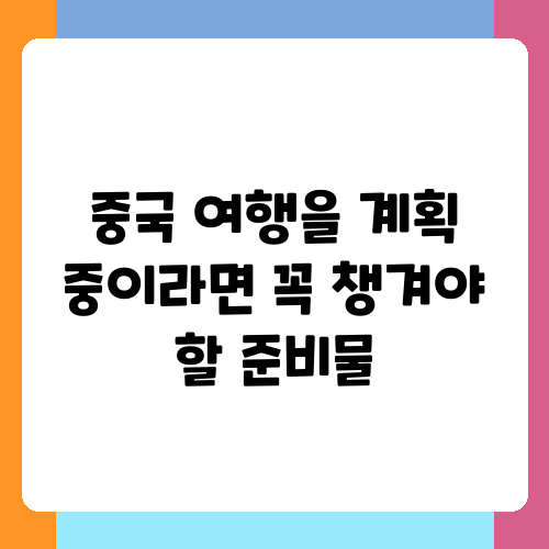 중국 여행, 설렘과 기대감에 가슴이 두근거리시죠? 하지만 낯선 곳에서의 여행은 꼼꼼한 준비가 성공의 지름길이라는 사실, 잊지 않으셨겠죠? 저는 수많은 중국 여행 경험을 바탕으로 여러분의 여행을 더욱 풍성하게 만들어줄 필수 준비물들을 알려드리려고 합니다. 어떤 준비물을 챙겨야 할지 고민이신가요? 그럼 지금부터 차근차근 함께 살펴보도록 해요!
