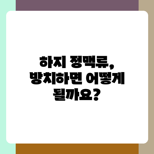 하지 정맥류를 방치하면 증상이 점점 악화되어 일상생활에 불편함을 초래할 수 있습니다. 다리의 통증과 부종이 심해지고, 피부 궤양이나 혈전색전증과 같은 심각한 합병증이 발생할 위험이 높아집니다. 혈전색전증은 혈전이 폐동맥을 막아 생명을 위협할 수 있는 매우 위험한 질환입니다. 따라서 초기 증상이 나타나면 빨리 병원을 찾아 진단받고 적절한 치료를 받는 것이 매우 중요합니다. 자신의 증상을 정확하게 파악하고 적절한 시기에 병원을 찾는 것이 하지 정맥류로 인한 심각한 합병증을 예방하는 가장 효과적인 방법입니다. 조기에 발견하면 비교적 간단한 치료로 증상을 완화할 수 있으니 너무 걱정하지 마시고, 증상이 의심된다면 병원에 방문하여 상담해 보세요.