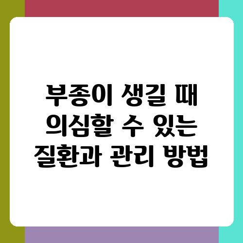 부종은 다양한 원인으로 인해 발생할 수 있고, 단순한 불편함을 넘어 심각한 질병의 신호일 수 있습니다. 따라서 부종이 지속되거나 심해지는 경우에는 반드시 병원을 방문하여 정확한 진단을 받고 적절한 치료를 받는 것이 중요합니다. 오늘 알아본 정보가 부종 관리에 도움이 되길 바랍니다. 건강한 하루 되세요!