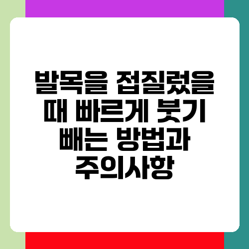 발목을 접질렀을 때의 통증과 붓기는 정말 끔찍하죠. 저도 한 번 발목을 심하게 접질러서 며칠 동안 고생한 기억이 있어요. 얼마나 불편하고 힘든지 너무 잘 알기에, 오늘은 발목 붓기를 빠르게 빼는 방법과 함께 주의사항을 자세하게 알려드리려고 합니다. 발목 부상 후 빠른 회복을 위해, 제가 직접 경험하고 효과를 본 방법들을 중심으로 설명해 드릴게요.