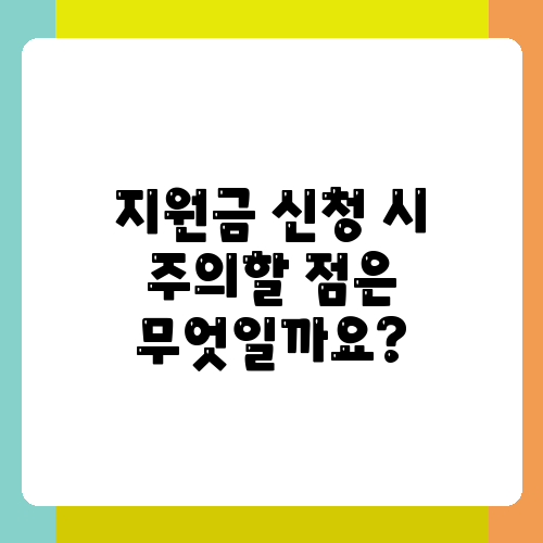 지원금 신청 시 주의할 점은 마감 기한을 꼭 확인하는 것입니다. 각 지자체의 지원 사업은 예산 소진 시 조기에 마감될 수 있으므로, 마감 기한을 넘기지 않도록 주의해야 합니다. 또한, 제출 서류에 오류가 없도록 꼼꼼하게 확인해야 합니다. 서류에 오류가 있을 경우, 신청이 반려될 수 있으므로, 제출 전에 꼼꼼하게 검토하는 것이 중요합니다. 그리고 지원 대상에 대한 자격 요건을 정확하게 확인하는 것도 중요합니다. 자격 요건을 충족하지 않을 경우, 지원금 신청이 거부될 수 있습니다. 마지막으로, 신청 과정에서 궁금한 점이 있다면, 담당 부서에 문의하여 정확한 정보를 얻는 것이 좋습니다. 미리 준비하고 확인하는 것이 시간과 노력을 절약하는 지름길입니다.