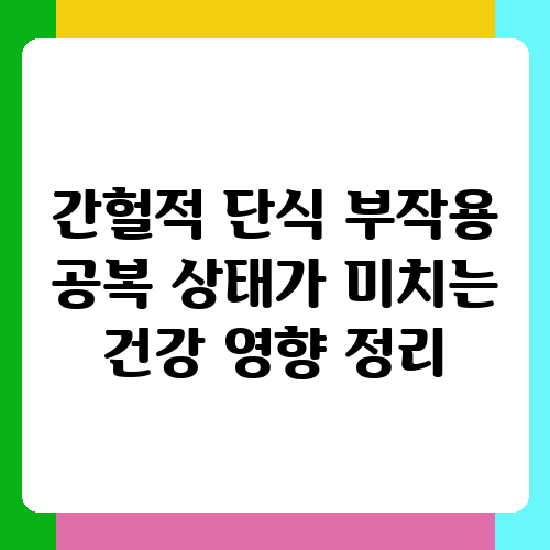 간헐적 단식, 요즘 정말 핫하죠? 다이어트에 효과적이라고 해서 많은 분들이 도전하고 계시더라고요. 하지만 간헐적 단식에도 부작용이 있다는 이야기를 들어서 망설이시는 분들도 많을 거예요. 저도 처음에는 효과만 보고 시작했는데, 몸 상태를 잘 살피지 않으면 건강에 좋지 않은 영향을 미칠 수 있다는 것을 알게 되었습니다. 그래서 오늘은 간헐적 단식의 부작용과 공복 상태가 우리 몸에 미치는 영향에 대해 자세히 알아보고, 안전하게 간헐적 단식을 하는 방법을 함께 고민해 보도록 하겠습니다.