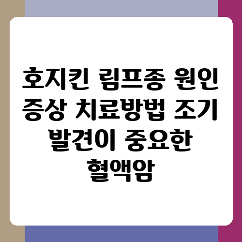 호지킨 림프종이라는 병명, 들어보셨나요? 생소하게 느껴지시는 분들도 많으실 텐데요. 사실 혈액암의 한 종류로, 조기에 발견하면 충분히 치료가 가능한 질병입니다. 하지만 증상이 모호하고 늦게 발견될 경우 심각한 상황으로 이어질 수 있기 때문에, 호지킨 림프종에 대한 정확한 이해가 매우 중요합니다. 이 글에서는 호지킨 림프종의 원인, 증상, 치료 방법 그리고 조기 발견의 중요성에 대해 알기 쉽게 설명해 드리겠습니다. 함께 알아보고 건강을 지키는 데 도움이 되는 정보를 얻어가시길 바랍니다.