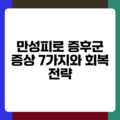 잦은 피로감에 시달리고 계신가요? 잠을 충분히 자도 개운하지 않고, 몸이 무겁고, 집중력이 떨어지는 경험, 누구나 한 번쯤 해봤을 거예요. 하지만 이런 증상이 6개월 이상 지속되고, 일상생활에 지장을 줄 정도라면 만성피로 증후군을 의심해볼 필요가 있습니다. 오늘은 만성피로 증후군의 주요 증상 7가지와 회복을 위한 전략을 자세히 알아보고, 건강한 일상으로 돌아갈 수 있도록 도와드리겠습니다.
