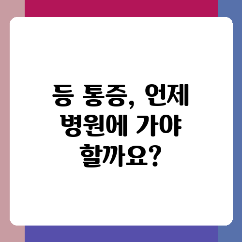 가벼운 근육통은 집에서 휴식을 취하고 스트레칭을 하면 호전될 수 있지만, 다음과 같은 경우에는 즉시 병원을 방문하는 것이 좋습니다. 심한 통증이 지속되거나 점점 악화되는 경우, 다리로 뻗치는 방사통이나 저림 증상이 있는 경우, 열이 나거나 다른 증상이 동반되는 경우, 외상 후 통증이 심한 경우, 보존적 치료에도 불구하고 증상이 호전되지 않는 경우 등입니다. 등 통증은 방치하면 만성화될 수 있으므로, 초기 대처가 중요합니다. 자신의 상태를 정확하게 판단하기 어려울 경우에는 전문의의 진료를 받는 것이 가장 안전하고 효과적인 방법입니다. 자신의 건강을 위해 주저하지 말고 적절한 시기에 병원을 방문하세요.