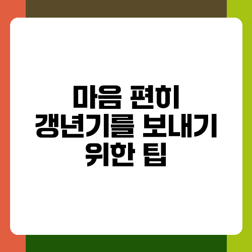 갱년기 열감은 단순히 신체적인 문제가 아니라 정신적인 부분도 큰 영향을 미친다고 합니다. 스트레스 관리를 위해 요가나 명상, 취미 활동 등 자신에게 맞는 스트레스 해소 방법을 찾는 것이 중요합니다. 가족이나 친구들과 이야기를 나누거나, 전문가의 도움을 받는 것도 좋은 방법입니다. 긍정적인 사고방식을 유지하고, 나 자신을 사랑하고 아끼는 마음을 갖는 것이 갱년기를 건강하게 보내는 데 큰 도움이 될 거예요. 지금까지 설명드린 방법들을 하나씩 실천해 보시면서, 편안하고 건강한 갱년기를 보내시길 바랍니다. 어려움을 겪고 계시다면 전문가의 도움을 받아 보세요. 당신은 혼자가 아니니까요.