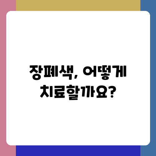 장폐색의 치료는 원인에 따라 다릅니다. 가벼운 경우에는 금식과 수액 요법으로 증상을 완화할 수 있지만, 심한 경우에는 수술이 필요할 수도 있습니다. 만약 장이 막힌 부분이 좁아진 경우에는 내시경을 이용해 막힌 부위를 넓히는 시술을 하기도 합니다. 수술은 막힌 부분을 제거하거나 장의 연결 부위를 다시 연결하는 등의 방법으로 이루어집니다. 수술 후에는 장 기능 회복을 위한 관리가 중요합니다. 치료 과정은 각 환자의 상태에 따라 달라질 수 있으니, 의사 선생님과 충분히 상담하고 치료 계획을 세우는 것이 중요합니다. 치료 기간 동안에는 의사의 지시를 잘 따라야 빠른 회복을 기대할 수 있다고 생각합니다.