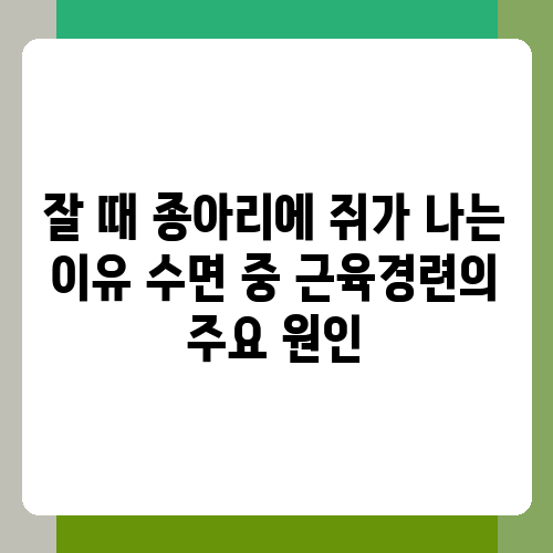 잠자리에 들었는데 종아리가 갑자기 욱! 하고 쥐가 나는 경험, 누구나 한 번쯤 해보셨을 거예요. 밤중에 쥐가 나면 잠에서 깨고 통증에 괴로워하며 잠 못 이루는 경우가 많죠. 도대체 왜 잠잘 때 종아리에 쥐가 나는 걸까요? 오늘은 수면 중 근육 경련의 주요 원인과 해결책을 자세히 알아보고, 편안한 숙면을 위한 팁을 함께 나누도록 하겠습니다.