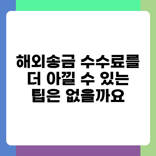 해외송금 수수료를 아끼는 팁을 몇 가지 더 알려드릴게요. 첫째, 송금액을 크게 하는 것을 고려해 보세요. 일정 금액 이상 송금할 경우 수수료가 할인되거나, 수수료율이 낮아지는 경우가 많습니다. 둘째, 송금 시기를 잘 선택하세요. 은행이나 송금 업체에서는 특정 시기에 프로모션을 진행하기도 하므로, 이 기간을 이용하면 수수료를 절약할 수 있습니다. 셋째, 송금 전에 미리 수수료와 환율을 비교해보고, 가장 저렴한 방법을 선택하는 것이 중요합니다. 넷째, 자주 이용하는 은행이나 송금 업체가 있다면, VIP 고객 혜택을 활용하는 것을 고려해 볼 수 있습니다. VIP 고객에게는 수수료 할인이나 환율 우대와 같은 다양한 혜택이 제공될 수 있거든요. 마지막으로, 여러 송금 방법을 비교해보고 가장 저렴하고 안전한 방법을 선택하세요. 조금만 신경 쓴다면 생각보다 많은 돈을 절약할 수 있답니다.